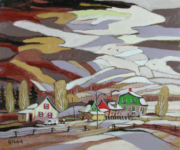 À partir du début des années soixante, Jean-Guy Desrosiers a consacré chaque jour à peindre toute la journée. Il nenvisage pas la peinture comme moyen de subsistance, mais selon ses propres termes, comme une « nécessité vitale ». Ayant grandi au sein dune famille nombreuse de Sorel, au Québec, la couleur et le design lintéressèrent toujours, mais l'art était exclu de la vie familiale. Une fois en âge de poursuivre son rêve de devenir artiste, il en fit une idée fixe. À vingt-et-un ans, il entama des études dart à Ottawa pour les poursuivre à Québec et les achever en 1965 à lÉcole des beaux-arts de Montréal. En plus de sa réputation de peintre doué et prolifique, Jean-Guy Desrosiers dépassa sa carrière d'artiste pour devenir photographe d'aviation et illustrateur scientifique. Même si ces autres domaines lui permirent de gagner sa vie, lartiste ne cessa jamais de peindre. Aujourdhui encore, il peint jour et nuit, même en voyage. Il emporte toujours une boîte daquarelle dans sa valise pour ne jamais manquer une occasion de fixer une scène inspirante. Même sil préfère travailler daprès nature, il prend parfois « des libertés avec le sujet, utilisant la couleur et les formes pour fournir une interprétation fantaisiste ». Il crée de charmantes représentations des villages de pêcheurs et des montagnes de Charlevoix, mais on retrouve, bien cachées dans la collection privée de l'artiste, plusieurs toiles abstraites et surréalistes. Reconnu pour sa palette de couleurs unique, les oeuvres de cet artiste fantasque ont été exposées partout au Canada, aux États-Unis et en Europe, mais cest dans sa province, au Québec, quon lapprécie par-dessus tout, son véritable « chez lui » depuis qu'il y est né en 1934.