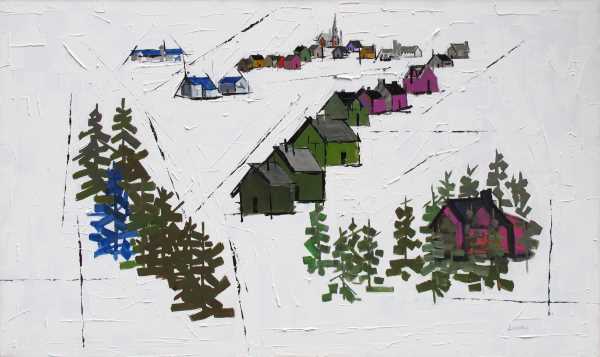 La luminosité et lintensité de ses couleurs, appliquées aux sujets quil affectionne et qui sinscrivent dans la tradition des paysagistes Québécois, donnent des tableaux pleins deffets atmosphériques, de mouvements et de rythme sûrement dus aux influences du jazz qui lui sert de catalyseur.